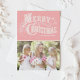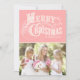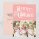 Cartões de foto de Natal personalizável com tipografia ocidental em fundo rosa.