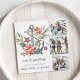 Cartão com fotos de feriado no estilo costeiro bonito em forma quadrada única apresenta três fotos em um layout de colagem ao lado de uma ilustração de âncora de aquarelas adornada com flores de poinsettia, estrelas vermelhas e verde de Natal colorido. "Seas e saudações" aparece abaixo, juntamente com o seu nome familiar e nomes individuais ou o ano.