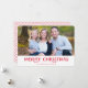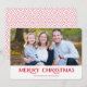 Um simples cartão com fotos de férias com o sentimento, "Feliz Natal" em vermelho. Um espantador de padrão de diamante adiciona um duro capricho. Personalize o cartões de natal e carregue sua própria foto.