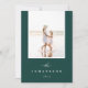 Cartão com fotos de feriado simples e elegante permite que sua foto favorita da família tire o palco central. As cores de feriado do design de eterno em chic apresentam um rico fundo verde de corrida com sua foto esboçada em branco, seu nome de família e o ano no final em branco nítido. Adicione três fotos adicionais ao verso, juntamente com um cartões de natal pessoal sobre um fundo verde pastel em contraste. Uma bela escolha minimalista que fará com que suas mensagens de feriado saiam do grupo.