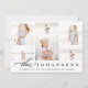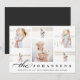 Cartão com fotos de feriado simples e elegante apresenta seis fotos em um layout de colagem, com seu nome de família e mensagem personalizada na parte inferior em cinzas escuras de carvão. Adicione uma foto adicional ao verso, juntamente com texto personalizado opcional adicional. Uma bela escolha minimalista que fará com que suas mensagens de feriado saiam do grupo.