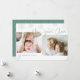 O design de cartão de Feliz ano novo simples e moderno apresenta duas de suas fotos favoritas com um alinhamento deslocado, enquadrado por quedas de neve. O "Ano Novo Mais Alegre" aparece em letras verdes, escritas à mão, com o nome da sua família e o ano no canto inferior esquerdo. Um design único contemporâneo em um layout horizontal ou paisagístico para uma aparência de feriado em tendência.
