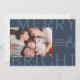 Um cartão de feriado moderno e colorido, com uma fotografia horizontal ou orientada à paisagem, com "Feliz e Brilho" sobreposto em caracteres de tons sobredimensionados. Personalize com seu cartões de natal personalizado, seu nome de família e o ano. Uma escolha moderna e moderna minimalista para os cartões de Natal 2021.