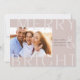 Um cartão de feriado moderno e colorido, com uma fotografia horizontal ou orientada à paisagem, com "Feliz e Brilho" sobreposto em caracteres de tons sobredimensionados. Personalize com seu cartões de natal personalizado, seu nome de família e o ano. Uma escolha moderna e moderna minimalista para os cartões de Natal 2021.