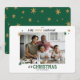 Espalhe um pouco de torcida este ano! Este cartão de Natal engraçado e reluzente diz "Falso sorri para todos, é Natal. Personalize com sua foto e cartões de natal da família. Típica lúdica moderna e sotaques festivos verdes e dourados