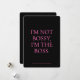 Diga em voz alta, diga orgulhoso - "Eu não sou mandona, sou o chefe." Este cartão ousado e empoderador é perfeito para as mulheres destemidas da sua vida que lideram com confiança. Seja para seu melhor, colega, gerente, ou para você mesmo, este cartão faz uma declaração forte embrulhada em estilo. Personalize-o com a sua própria mensagem e faça dele um presente para se lembrar - ideal para aniversários, promoções, dia de chefe, ou só porque. Perfeito para: Menina Bosses Feminista Empreendedores Feministas Promoção Feministas, Camaradas Boss Dia Gifts Passageiros Personalizados para Seus Detalhes: - Cartazes de Alta Qualidade - dentro de texto personalizável - design moderno, minimalista e poderoso - Disponível em vários tamanhos Avise que ela executa o show - com um cartão que diz tudo.