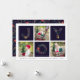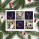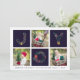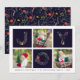 Compartilhe cartões de natal com estes cartões de Natal fotográficos com três das suas fotografias quadradas favoritas num esquema horizontal, alternando com "JOY" em tipografia festiva formada com botânicos de Natal e flores de Natal. Adicione sua saudação personalizada, seu nome de família e o ano na parte inferior. Cartões invertem para um padrão botânico de feriado em azul-da-meia-noite rico.