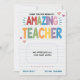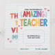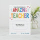 Diga obrigado de você de uma forma brilhante e alegre com este adorável cartão de reconhecimento de "Professora Incrível"! Apresentando letras coloridas no arco-íris num fundo estilo notebook, este cartão de feriado plano é perfeito para o final do ano letivo, Semana de Apreciação do Professor, ou apenas por causa disso. Personalizado com o seu nome e o do seu professor, é uma maneira sincera de os alunos expressarem gratidão por todo o trabalho de duro, encorajamento e apoio que recebem na sala de aula. Ideal para crianças do ensino fundamental, famílias de escolas de casa, ou qualquer pessoa que queira celebrar um professor verdadeiramente incrível. Inclui espaço para sua própria mensagem personalizada e entrega com um envelope correspondente.