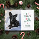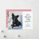 Este cartão de Natal de cachorro é o cartão perfeito para donos de animais de estimação com um cão que foi um pouco travesso este ano. Ele apresenta a frase engraçada "É tarde demais para ser um bom menino" e uma foto do seu filhote. Personalize as cores para combinar com a foto do seu animal de estimação!