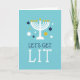 Um cartão de saudação engraçado do Chanucá apresenta um fundo azul turquesa com "vamos acendido" e uma ilustração da menorah acesa com estrelas azul e branca. Personalize o dentro com uma mensagem e assinatura Hanukkah pré-impressas.
