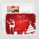 Este barato e festivo cartão com fotos vermelho e branco "Feliz Natal" tem um cervo macho com galhadas adoradas com sagras e bagas, presentes vermelhos e brancos com fitas, flocos de neve, estrelas e uma variedade de árvores de Natal em um fundo vermelho brilhante com uma borda de neve sobre ele. Você pode carregar sua própria foto digital na área do modelo e personalizar as caixas de teste com suas próprias informações e textos. Se você precisar de itens correspondentes, como envelope, postagem ou selo de envelope, envie um email para niteowlstudio@gmail.com com sua solicitação.