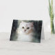 Este cartão bonito caracteriza o visco, prata pequena doce um gato persa protegido. Está sentando-se na janela que olha para fora na chuva. Este cartão está vazio para sua própria mensagem.
