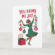 Encerre a temporada de férias de alguém com este charmoso cartão de saudação "Você me traz alegria". Apresentando uma na moda de ilustração de uma mulher alegre dançando a música festiva, cercada por ornamentos e verde, esta carta é uma forma perfeita de espalhar amor e felicidade. Ideal para amigos, família, ou qualquer pessoa que faça suas férias especiais, este cartão captura a magia da alegria e da celebração.