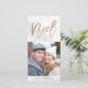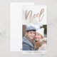 Comemore a época de Natal com um cartão com fotos de Natal moderno e chique. O cartão de Natal apresenta um fundo de mármore branco, uma letra de pincel de bronze de folha falsa com a palavra "Noel" e uma fotografia personalizada.