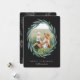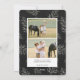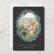 Mande cartões de natal para amigos e família em estilo chic com nossos cartões com fotos elegantes. A sua imagem vertical ou vertical favorita é enquadrada por uma coroa de louros ovais de folhas de cor aquática verde de eucalipto sobre fundo preto macio. Personalize com seu cartões de natal personalizado e nomes abaixo em letras brancas e adicione duas fotos adicionais ao verso, juntamente com uma mensagem pessoal personalizada.