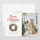 Festividades Wreath Holly Berries Foto Feliz Cartão de Natal