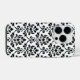 Design de padrão de superfície do damasco decorativo em detalhes em preto sobre um fundo branco.