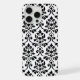 Design de padrão de superfície do damasco decorativo em detalhes em preto sobre um fundo branco.