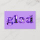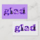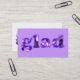 Uma flor púrpura iluminada por sol forma as letras da palavra "feliz" e é impressa em ambos os lados do cartão de visita. Um lado tem uma cor de fundo de lavanda, e o outro lado é branco. Obrigado por comprar na PositiveAffirmation em Zazzle.