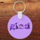 Uma flor púrpura iluminada por sol é esboçada com a palavra feliz e impressa no estilo chaveiro da sua escolha. Para escolher um fundo de cor diferente, clique em Personalizar, em Editar, em Segundo Plano e, em seguida, na cor escolhida.