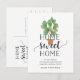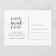 Cartões postais de anúncio encantadores e modernos que permitem aos amigos e à família saber sobre a sua nova casa doce! Design apresenta uma vibrante ilustração verde-aquática da figueira fig com "home doce home" em script preto suave e tipografia de blocos. Use os campos modelo para adicionar sua introdução personalizada, novo endereço e nomes. As informações se repetem no lado inverso com o espaço para endereçamento do destinatário.