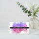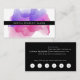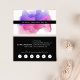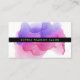 Os cartões de visitas de aquarela apresentam seu nome ou nome de empresa em camadas em uma ilustração florescente de tinta em tons brilhantes e coloridos de cor rosa fuchsia, magenta e violeta. Adicione as informações de contato do cheio ao fundo em branco sobre preto nítido. Inclui a sua oferta de fidelidade personalizada (mostrada com "desfrute 20% de qualquer serviço após cinco visitas") e seis pontos.