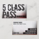 Cartão da passagem da classe do cartão de visita 5 da classe da malhação com um esquema de cores afligido vermelho e preto e um uso forte da tipografia. Para trás do cartão tem 5 placeholders do perfurador ou do selo. Aperfeiçoe a maneira de incentivar a participação da classe e uma ferramenta de marketing fácil. Use para uma empresa da malhação, um gym, um gym pessoal do instrutor, um treinamento do kettlebell, um bootcamp, ou um gym do treinamento do circuito.