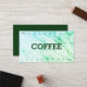 Café é uma bebida criada com sabor amargo preparado a partir das sementes torradas do cafeeiro. O feijão é encontrado em cerejas de café, que crescem em árvores cultivadas em mais de 70 países, principalmente na América Latina equatorial, Sudeste Asiático, Sul Asiático e África. O café verde (não torrado) é um dos produtos agrícolas mais comercializados no mundo. Excelente para uma cafeteria casual ou espresso drive-thru ou mesmo um café que sirva lattes e mochas e cappuccinos. Altere os números se quiser oferecer uma bebida grátis após menos (ou mais) visitas. Mantenha seus clientes voltando para mais bebidas de café especiais e de alta qualidade!