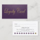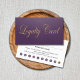 Cartão de fidelidade simples e moderno para o salão de beleza. Design elegante com fundo roxo de textura e fontes de escrita manual. Ferramenta perfeita de marketing para recompensar seus melhores clientes.
