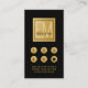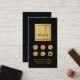 Cartão perfurado de falso efeito dourado, elegante e profissional, com marca d'água inicial de efeito quadrado monograma e texto editável no verso, com informações de contato e detalhes, além de um gerador de códigos QR opcional com um link para seu sistema de reservas de reservas de reservas de reservas de reservas.