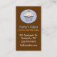 Cartão de visita à moda da padaria feito em marrom e no azul. Os gráficos bonitos de um cupcake do chocolate decoram um disco redondo azul, na parte dianteira, e blocos quadrados, na parte traseira para selos da lealdade do cliente. Personalize todo o texto, parte dianteira e parte traseira, para serir suas necessidades do negócio.