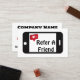 Recompensar seus clientes com uma placa de amigo de referência. Este cartão específico tem um ícone de telefone com um emoticon de bolha de amor. No lado do sacudir, você pode personalizar suas informações e promoções para ajustado de suas necessidades.