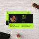 Um pequeno cartão de visita profissional empreendedor em verde limão vívido e preto oferece espaços reservados na forma de um logotipo personalizado redondo e nome da empresa com símbolos de rede personalizados para conectar e socializar. No lado frontal estão os espaços reservados para uma foto redonda personalizada com campos de texto personalizados que incluem nome, detalhes de contato e endereço. É possível personalizar mais a fonte, o tamanho da fonte, a cor da fonte e a cor do fundo e das formas. Se você precisar de assistência ou quiser discutir um projeto personalizado, entre em contato com https://t.me/KBMD3signs_chat.