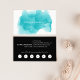 Os cartões de visitas de aquarela apresentam seu nome ou nome de empresa em camadas em uma ilustração florescente de tinta em turquesa tropical brilhante e legal. Adicione as informações de contato do cheio ao fundo em branco em preto rico. Inclui a sua oferta de fidelidade personalizada (mostrada com "desfrute 20% de qualquer serviço após cinco visitas") e seis pontos.