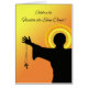 Ilustração de uma silhueta de Ruas. Cono segurando uma cruz e um halo solar atrás de sua cabeça. Celebra la Fiesta de San Cono. Escrito em espanhol, vazio de dentro para sua mensagem pessoal. Arte, imagem e direitos de autor © Shoaff Ballanger Studios.