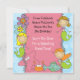 Figura adorável sereias da vara com várias cores do cabelo em um fundo cor-de-rosa e azul, em um caranguejo, na estrela do mar, nos peixes, nas flores, e nas áreas que você pode facilmente personalizar com específicos da festa de aniversário da sua criança antes de pedir.