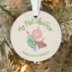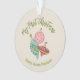 O primeiro enfeite personalizável de manutenção de natal de bebê neutro com foto atrás. Criado de um Enfeites de natal de aquarela desenhado à mão inspirado em vintage. Arte original de Leslie Larson.
