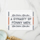 Este dia de os pais engraçado em vermelho e azul com a citação "Como pai, como filho. Uma dinastia de homens engraçados é perfeita para seu filho no dia de os pais. Este cartão de tipografia moderno é design para lembrar ao seu filho de onde vem seu senso de humor, neste belo dia que homenageia todos os pais ao redor do mundo. Feliz dia de os pais!