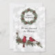 Um belo cardeal vermelho sentado em um galho de pinheiro desejando um Feliz Natal ao seu filho e seu parceiro
