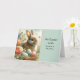 Celebre a Páscoa com este cartão de cumprimentos dobrado e lindamente ilustrado, projetado especialmente para um filho querido e sua esposa. A frente apresenta um coelhinho encantador aninhado entre flores de primavera, borboletas e ovos decorados, capturando a calidez e a alegria da estação. Um painel verde menta suave carrega a mensagem sincera: “Um desejo de Páscoa para Filho e Esposa.” Perfeito para compartilhar amor e bênçãos, esta criação de papel cartão de qualidade com uma dobra clássica é ideal para enviar pelo correio, entregar pessoalmente, exibir ou colocar em uma cesta de Páscoa. Um souvenir que eles guardarão, este design de Susang6 combina a alegria sazonal com um toque pessoal, reunindo arte, emoção e celebração da primavera em um gesto atencioso.