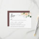 Concebido para combinar com a nossa coleção de casamento floral em aquarela do final do verão, este cartão de RSVP botânico elegante apresenta um sofisticado ramo de flores em aquarela, folhas de eucalipto, fatias de laranja e folhagens em uma paleta fresca de tons brancos, marfim, laranja, verde e rosa no canto superior direito do cartão, com a data de resposta desejada e escolha de refeição ou opções de entrada.