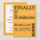 Finalmente casados, anúncio de casamento engraçado ou convite de festa com frases engraçadas: finalmente, já era hora, a espera acabou, tão esperado, etc. Seu texto personalizado do outro lado. Se as pessoas estiverem esperando há uma eternidade para você se casar e vocês fugiram ou tiveram um casamento em outro destino ou uma cerimônia no tribunal e estão fazendo uma festa de celebração de casamento casual mais tarde, personalize esse convite divertido e não tradicional para o seu evento pós-casamento. Ou edite o texto para ser um anúncio da sua união tão esperada.