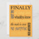 Finalmente casados, anúncio de casamento engraçado ou convite de festa com frases engraçadas: finalmente, já era hora, a espera acabou, tão esperado, etc. Seu texto personalizado do outro lado. Se as pessoas estiverem esperando há uma eternidade para você se casar e vocês fugiram ou tiveram um casamento em um destino distante ou uma cerimônia no tribunal e estão fazendo uma festa de celebração de casamento casual mais tarde, personalize esse convite divertido e não tradicional para o seu evento pós-casamento. Ou edite o texto para ser um anúncio da sua união tão esperada.