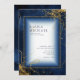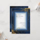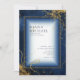Um fundo de aquarela em tons de azul real a marinho é tocado por um abstrato de linhas de ouro finas e efeitos luminosos brilhantes para criar as peças desta bela suíte de casamento. O cartão "Convite" do casamento mostrado aqui também apresenta texto fora do centro e um belo quadro de gradação para guardar todo o seu texto. Adicione facilmente seus próprios nomes, data do casamento e detalhes do evento usando o modelo fornecido. Procure ID867 para ver outras peças e opções de cores para este conjunto.