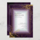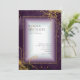 Um fundo de aquarela em tons de roxo de ameixa é tocado por um abstrato de linhas de ouro finas e efeitos de iluminação reluzentes para criar as peças desta bela suíte de casamento. O cartão "Convite" do casamento mostrado aqui também apresenta texto fora do centro e um belo quadro de gradação para guardar todo o seu texto. Adicione facilmente seus próprios nomes, data do casamento e detalhes do evento usando o modelo fornecido. Procure ID867 para ver outras peças e opções de cores para este conjunto.