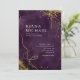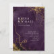 Um fundo de aquarela em tons de roxo de ameixa é tocado por um abstrato de linhas de ouro finas e efeitos de iluminação reluzentes para criar as peças desta bela suíte de casamento. O cartão "Convite" do casamento mostrado aqui também contém texto não centralizado; e uma fina borda de malha em ouro no sentido inverso. Adicione facilmente seus próprios nomes, data do casamento e detalhes do evento usando o modelo fornecido. Procure ID867 para ver outras peças e opções de cores para este conjunto.