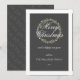 Cartão de Natal personalizado com uma coroa de água fria sobre cinzas de carvão com carvão e cor d'água. Folhagem verde e bagas vermelhas.