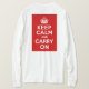 Versão moderna de "Manter Calmo e Continuar" vermelha e branca do poster clássico.