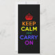 Mantenha-se calmo e continue no estilo de vintage design num arco-íris de cores contra fundo preto.