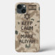 A leitura de texto "MANTER CALMA E FAZER ALIYAH" sobrepôs-se, sobre um fundo de camuflagem no deserto. Quando se apercebe que é altura de regressar a Israel, não entrem em pânico. Passo número um: Telefone para casa; depois comece a fazer dos seus planos. Queremos você aqui em Israel conosco. Você pode fazer isso, você pode até aprender hebraico - eu fiz. Há muitas pessoas aqui felizes em ajudá-lo. Se não sabe como continuar, pergunte-me. Aliyah (ע ל י ה), que significa sotaque, é a palavra hebraica para a imigração da diáspora para Israel. Aliyah é considerada como "subindo" na direção de Jerusalém.